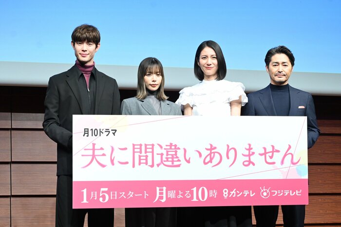 松下奈緒さん、桜井ユキさん、宮沢氷魚さん、安田顕さんがドラマ『夫に間違いありません』(カンテレ・フジテレビ系)の記者会見に出席しました。