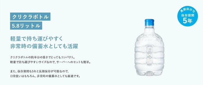 「クリクラボトル 5.8リットル」製品ページ:https://www.crecla.jp/lineup/bottle58/