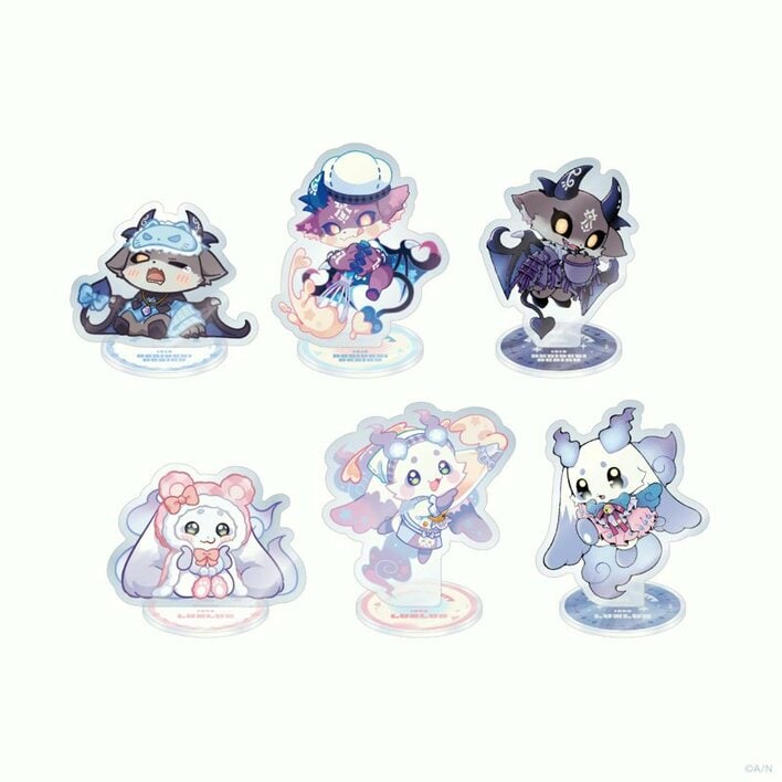 グッズは、定番の「両面アクリルスタンド」や「ランダムキラキラカード」「ランダムシュガー缶バッジ」をはじめ、おうち時間を彩る「抱き枕クッション」「ルームウェア」など、全11種の豪華ラインナップとなっています。