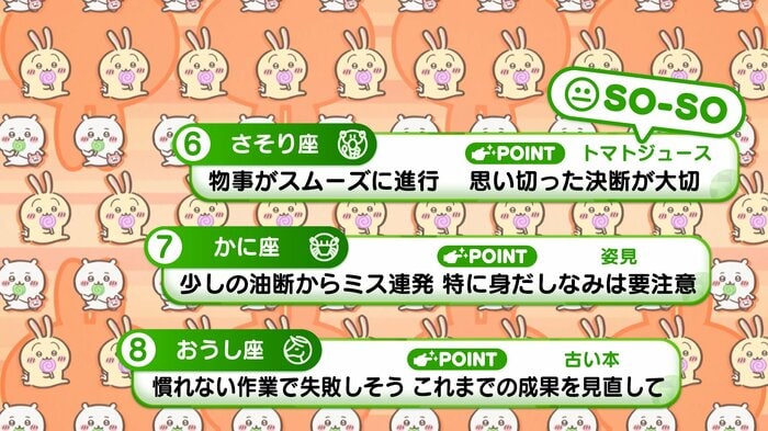 『めざましテレビ』で放送中の「ちいかわ占い」 テレビ放送がない日はお休みで、月~土:朝7時以降に更新予定です。