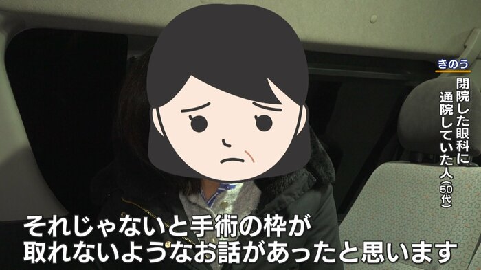 「アフターフォローをきちんとしてもらえそうだった」と女性は話しますが、突如、術後の目の状態を診てくれる医師がいなくなってしまったのです。