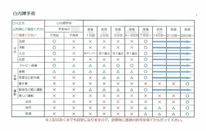 女性が見せてくれた紙には術後の注意事項が細かく記載され、今後の通院スケジュールも決まっていましたが、すべて白紙。