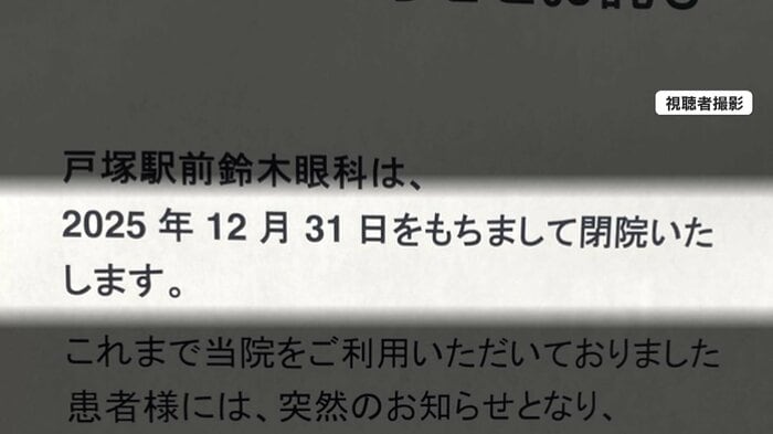 大晦日に突然閉院した眼科医院は2010年に開院。