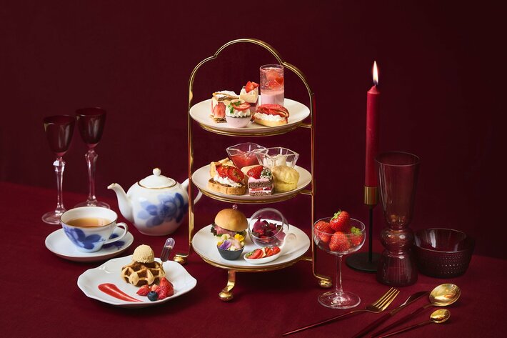 旬を迎える苺の魅力を存分に堪能する、華やかなアフタヌーンティーが登場します。グラスの中で美しい層を織りなすヴェリーヌや、サクサクのパイ生地が香るミルフィーユ、見た目もかわいいチョコレートフランなど、濃厚なものからさっぱりとした味わいまで、9種類のスイーツが彩り豊かに並びます。セイボリーには、ローストビーフを使ったミニバーガーやカプレーゼなど、苺の爽やかさを活かした4種類をご用意します。ひと口ごとに広がる苺の芳醇な香りと甘酸っぱさをお楽しみいただけます。ホテルのティーラウンジで、春の訪れを告げる苺づくしの優雅なひとときをお過ごしください。