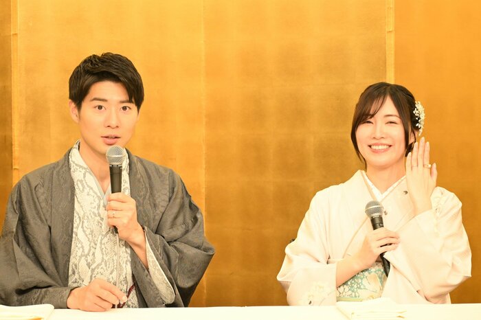プロポーズについての話題では辻󠄀本さんが「昨年末に11月26日にプロポーズをして今回はOKもすんなりもらいました。シンプルに『結婚してください』と。」とやわらかな表情でコメント。
