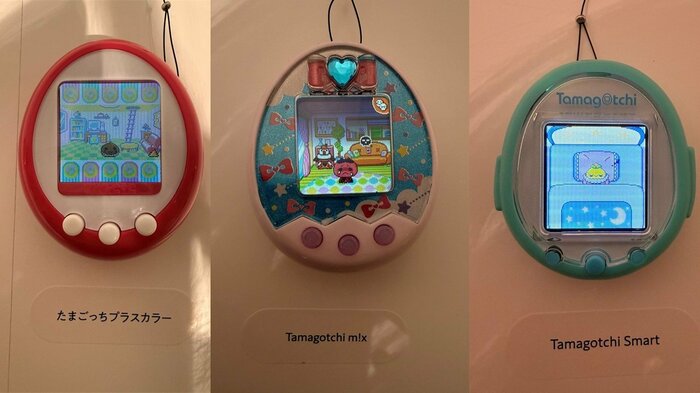 歴代のたまごっちが並んでいるので、懐かしさに浸るのもよし!まだ触ったことのないたまごっちに触れるのもよし!思い思いに体験できるのがうれしいポイントですね。