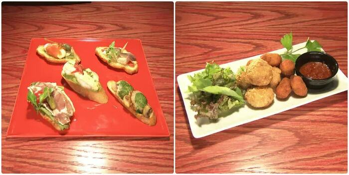 長谷川京子が来店したのは、「目黒バルぴんちょ Japanese Pinchos Bar Tokyo」。シェフ気まぐれピンチョスおまかせ5種盛(1660円)は、スペインのバルク地方に伝わるおつまみ「ピンチョス」をヒントに、バケットに生ハムや旬の素材をのせ、味付けに日本酒や白味噌を使用、和風テイストをプラスした一品。一口サイズで食べやすい、プティコロッケ盛り合わせ(M/740円)の中身は、カニクリームと生ハムの2種類。人気№1!角ハイボール(490円)で乾杯。