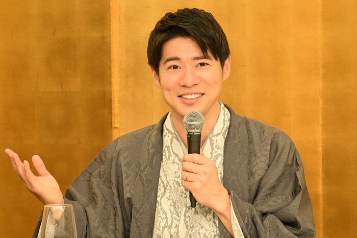 2人の出会いについて聞かれると、「約11年前にボイメンとして名古屋駅前でチラシを配っている時に、『こんなに寒いのに1人頑張ってえらいね』って言われて」と明かすと、松井さんが「そんな偉そうじゃないよ!」とツッコみ、報道陣の笑いを誘う場面も。