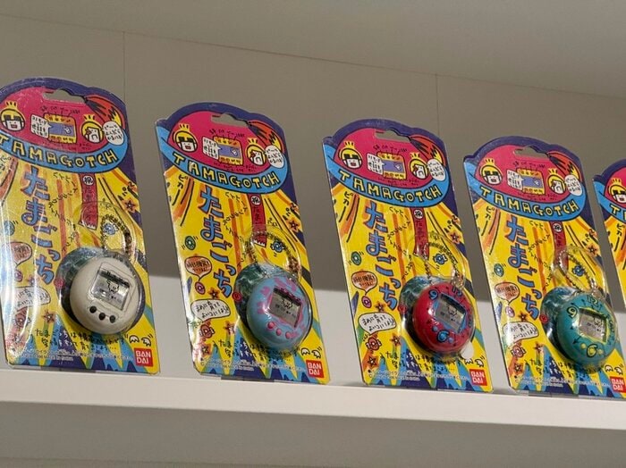 グッズ販売エリアの近くには、たまごっちの歴代のパッケージが展示された場所も!