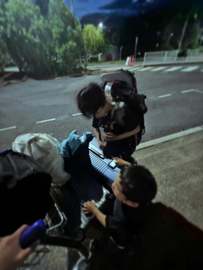 投稿文で「世界自然遺産を子どもたちに直接その目に見せてあげたい。」「その思いを堅いスーツケースに詰め込んでいざ2026オーストラリアへ」とつづり、カートに積まれたスーツケースのそばに、大きなリュックを背負った長男や次男が集まっている様子を公開しました。