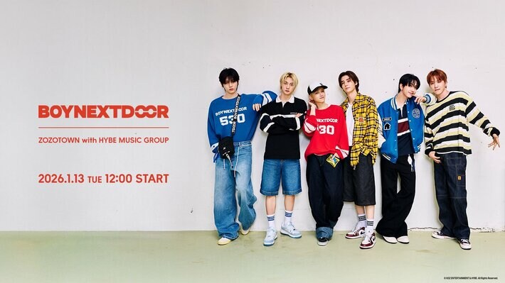 ZOZOTOWN20周年を記念した特別企画「ZOZOTOWN with HYBE MUSIC GROUP」(※)の第3弾として、 6人組ボーイグループ「BOYNEXTDOOR」とのオリジナルアイテムを1月13日(火)よりZOZOTOWN限定で販売します。