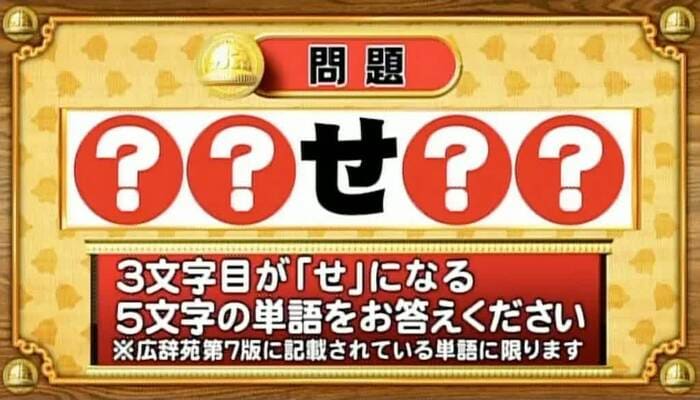 最初は「脳ミングアップクイズ」から、頭とお尻言葉の問題。3文字目が「せ」になる5文字の単語を答えてください。