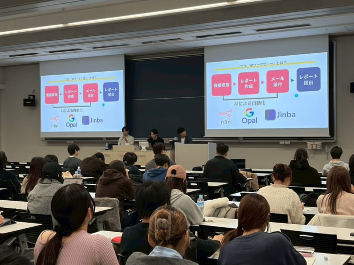 講義後のアンケートでは、「AIは仕事を奪うものというネガティブなイメージがあったが、『人間が楽しい仕事に集中するためのパートナー』だと思えるようになった。」「プログラミングができない自分でも、AIを使えばアイデアを数分で形にできる。夢がある講義だった」といった前向きな感想が多く寄せられました。