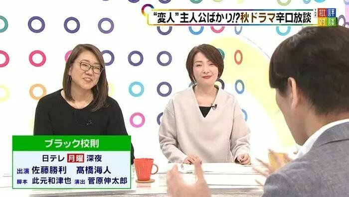 ドラマ解説者・木村隆志氏、日刊スポーツ芸能担当記者・梅田恵子氏、ライター・吉田潮氏、久代萌美フジテレビアナウンサーが、ドラマ通としての覚悟を持って現在放送中の秋ドラマを徹底的に斬りまくった。
