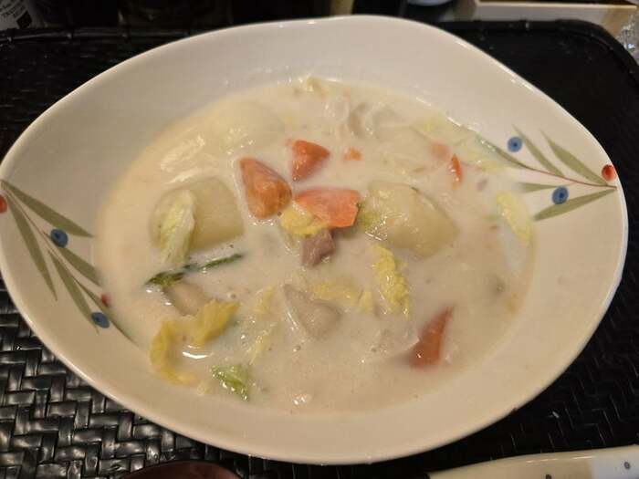 にんじん、じゃがいも、葉物野菜などがゴロッと入っており、心も体も温まりそうですね。