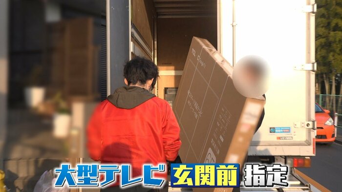 この日も大型テレビを「置き配」指定で配達しましたが、指定場所は玄関前。