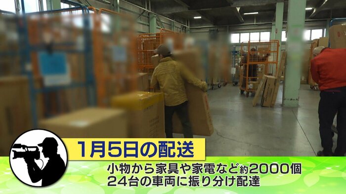 取材をした5日は、小物から家具や家電など約2000個の荷物が営業所に持ち込まれました。この荷物を、24台の車両で配達します。