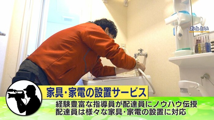 「デリバリーサービス」では、配達だけでなく家具などの買い換えの際に設置作業の代行サービスも行っています。社内の経験豊富な指導員が、配達員にノウハウを伝授しており、様々な商品に対応しています。