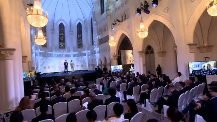 授賞式は、すべて英語で進行され、授賞式会場のステージで登壇者がしゃべる言葉も英語です。