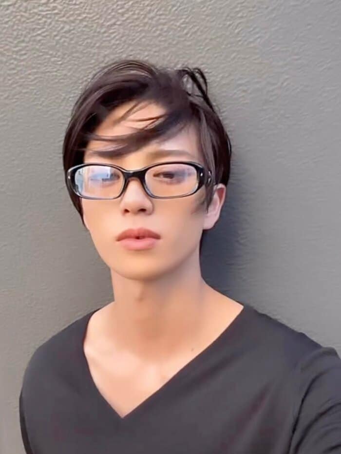 さらにもう一つの動画では、黒のVネックTシャツに黒縁メガネを合わせた姿を披露。強い風に吹かれて前髪が乱れながらも、落ち着いた表情で自撮りをしています。