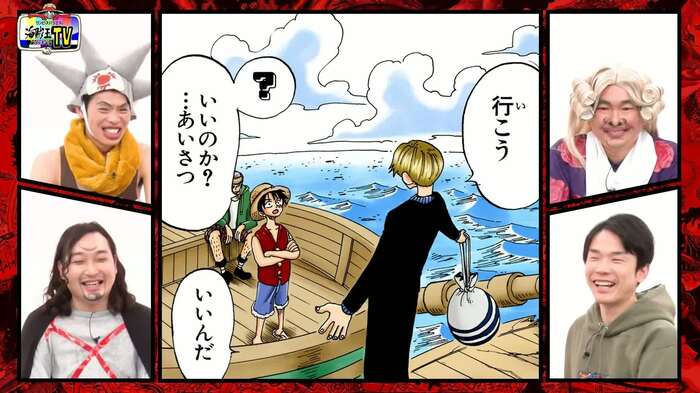 「ONE PIECE」の原作者・尾田栄一郎さん公認のこの番組。尾田さんも毎回、一視聴者として楽しみにしており、MCのかまいたち(山内健司さん、濱家隆一さん)とは直接LINEメッセージで意見を送りあう仲です。