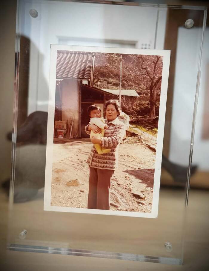 写真には、どこか懐かしさを感じさせる日本家屋を背に、幼い氷川さんを抱いた祖母の姿が。祖母は少し緊張した面持ちながらも、腕の中の氷川さんをしっかりと守るように優しく抱き寄せています。まだあどけない表情の幼い氷川さんは、祖母の胸元に身を委ねるように収まっていて、とってもかわいらしいですね。