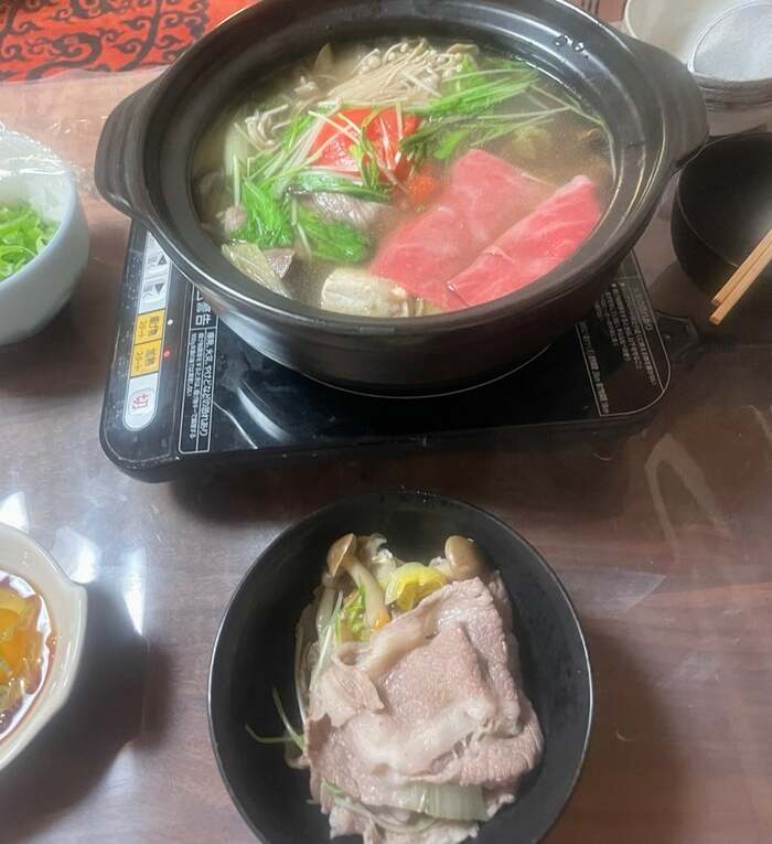 この日も、お肉や野菜など具材たっぷりのお鍋を食べていたようです。
