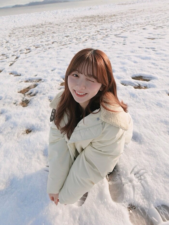 降り積もった雪の中にたたずむ、彼女感あふれる姿に「雪の妖精やんんん」などと反響が寄せられています。