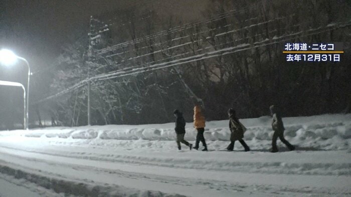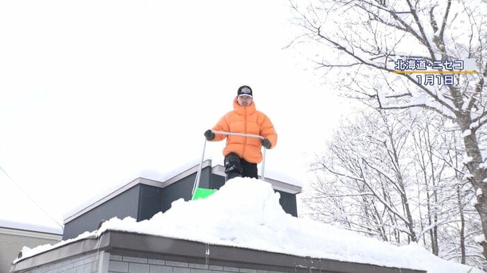 そして迎えた元旦。「ニセコ留学」しているサチコさんとコウスケさんが働く「ニセコ カシノヤ」では、朝から総出で雪かきが始まります。