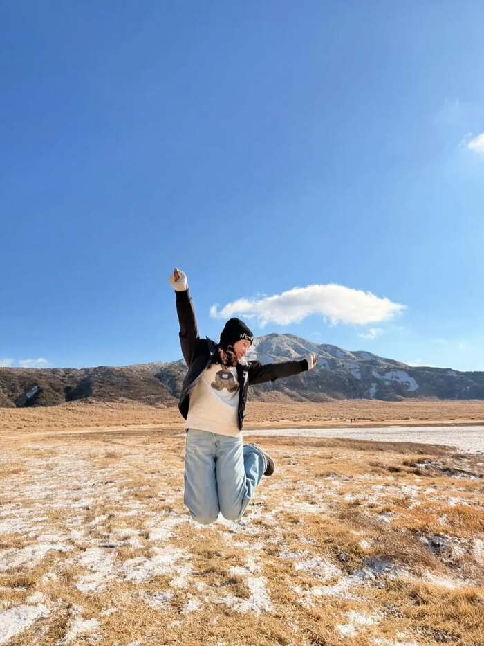 雪化粧をまとった熊本を楽しむ様子を公開しました。