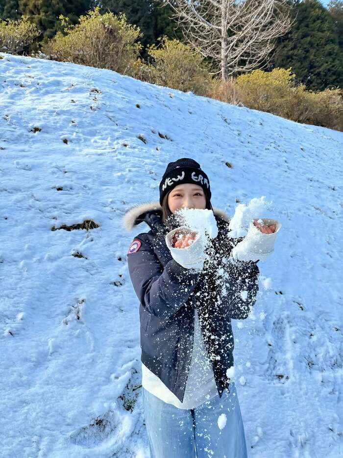 また、雪の中で無邪気にはしゃぐ写真も。袖で覆った手で雪の塊をもち、楽しそうな様子が伝わってきます。