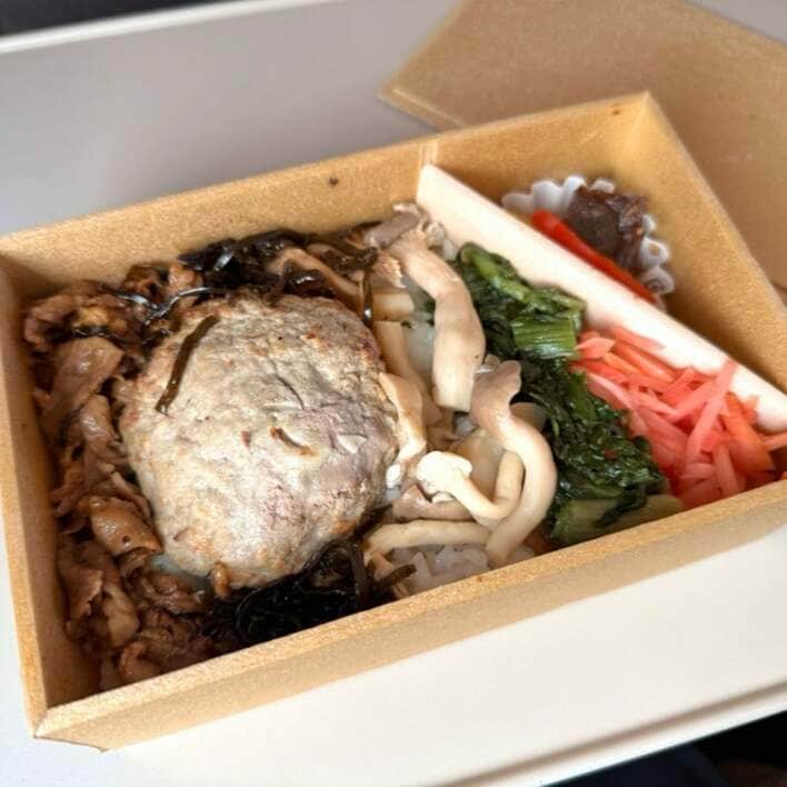 真野さんは、「ハンバーグと牛すじ煮込みが入ったガッツリ系のお弁当 ハンバーグが食べ応えあってとっても美味しかった〜」と大満足した様子。