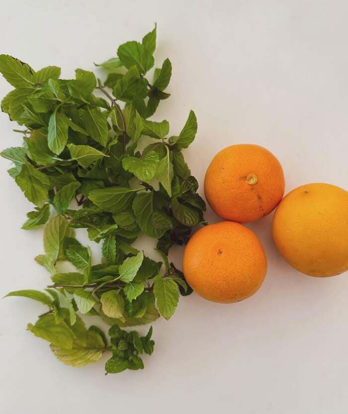そして、朝に収穫したというミントやミカン、レモンの写真も。みずみずしく、フレッシュさが伝わってきますね。