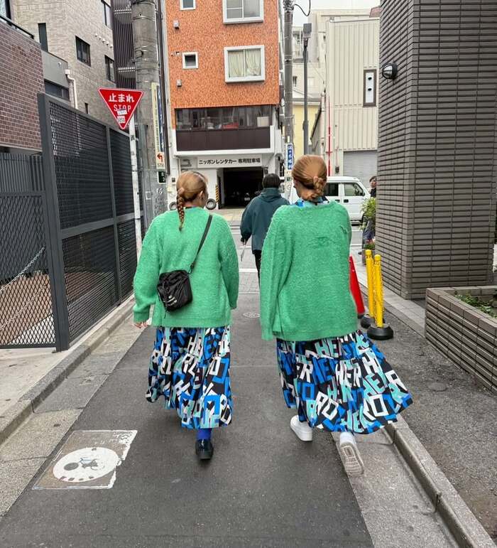 先日「双子デートしてます」とつづり、とある人物と一緒に路地を歩く後ろ姿ショットを公開した沙羅さん。2人は緑のトップスにアルファベットプリントのワンピースという全く同じスタイルをしていて、どちらが沙羅さんなのか全く分からないほどよく似ています。
