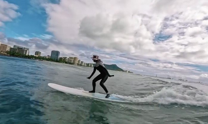 ハワイの海でサーフィンを満喫するアクティブな姿を公開しました。