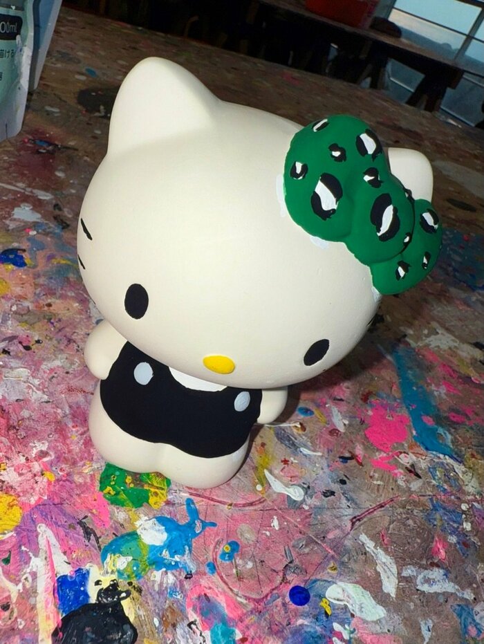 そして、投稿文で「マユカオリジナルキティちゃんどう??笑笑 可愛くない??」とつづり披露した完成品を見てみると、リボンには緑色をベースにヒョウ柄を描き、洋服は黒に色づけしたかわいらしいハローキティができあがっています!