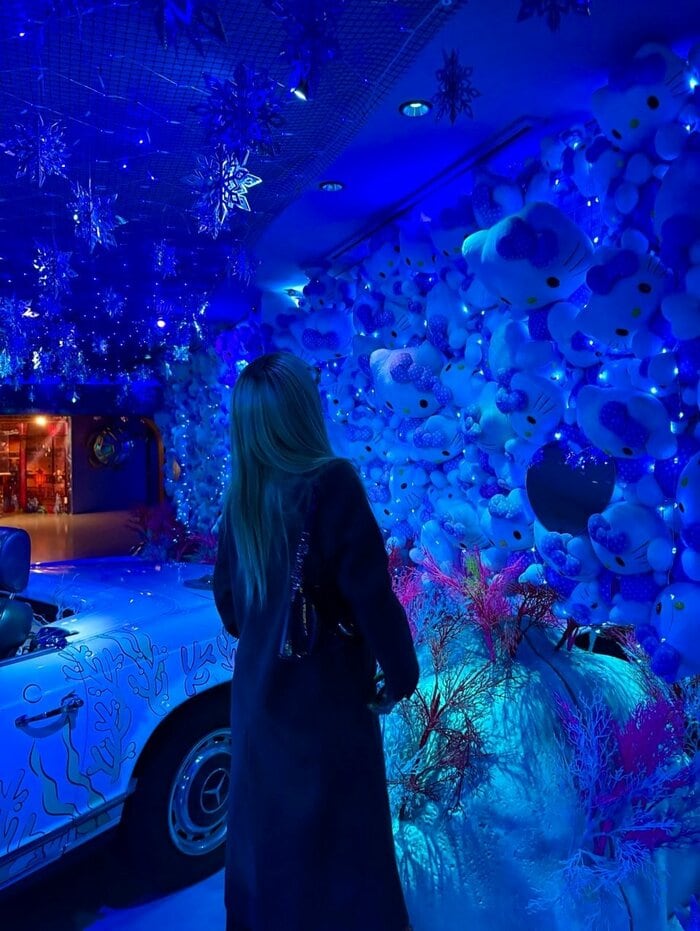 まるで竜宮城の世界に迷い込んだような空間では、青く照らされたきれいな景色に夢中になっている様子のMAYUKAさん。