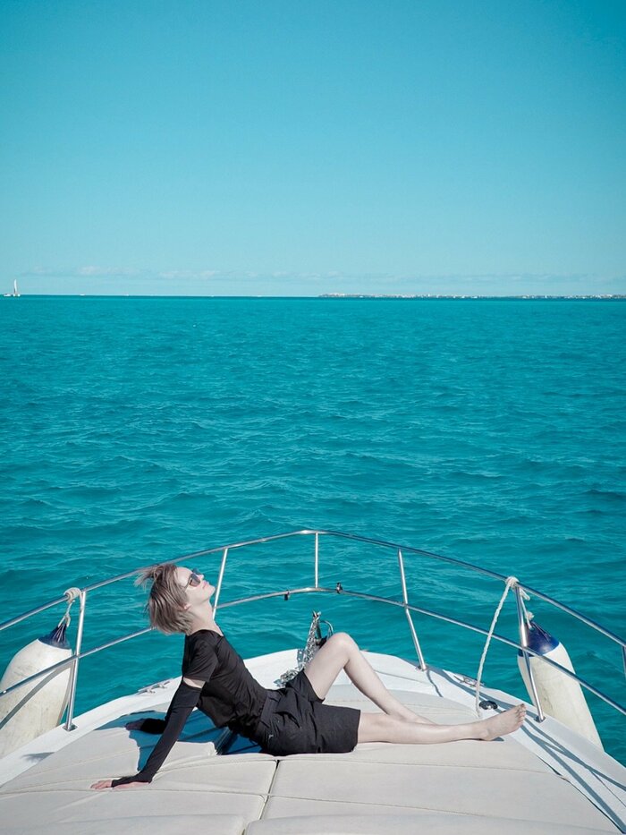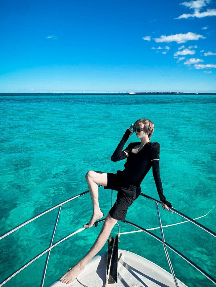 さらに、Mattさんは「クルージングも最高に楽しくて、水着忘れたからUNIQLOで過ごしました」と、旅行に持ち合わせていた服で広大な海を満喫しています。