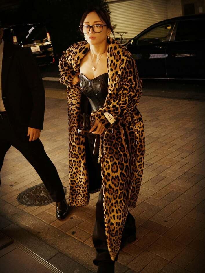 浜崎あゆみ ヒョウ柄ロングコートでパーティーへ!「最強すぎ」