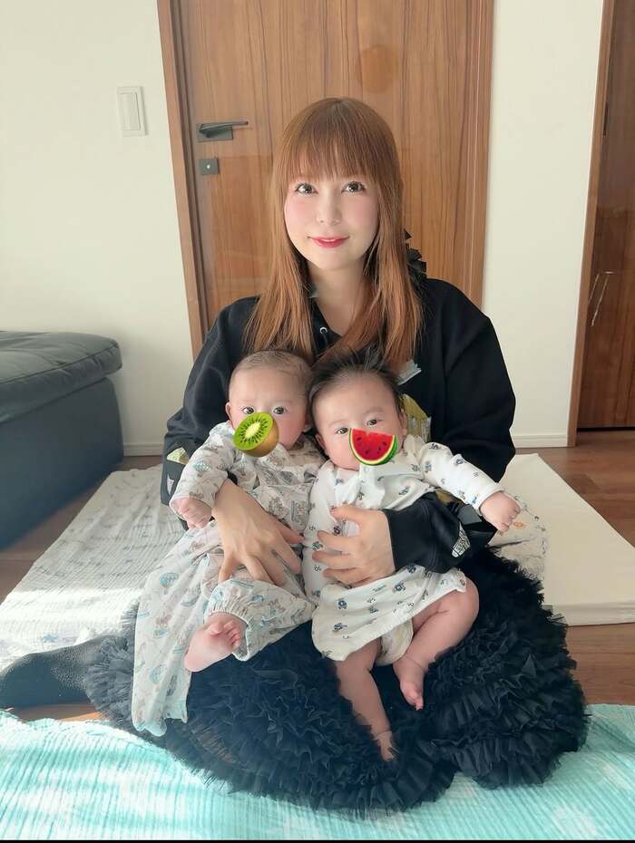 中川さんは、「二人とも首が据わってくれて成長を感じます!うう、うれしい」とつづり、双子を抱えたショットを公開。