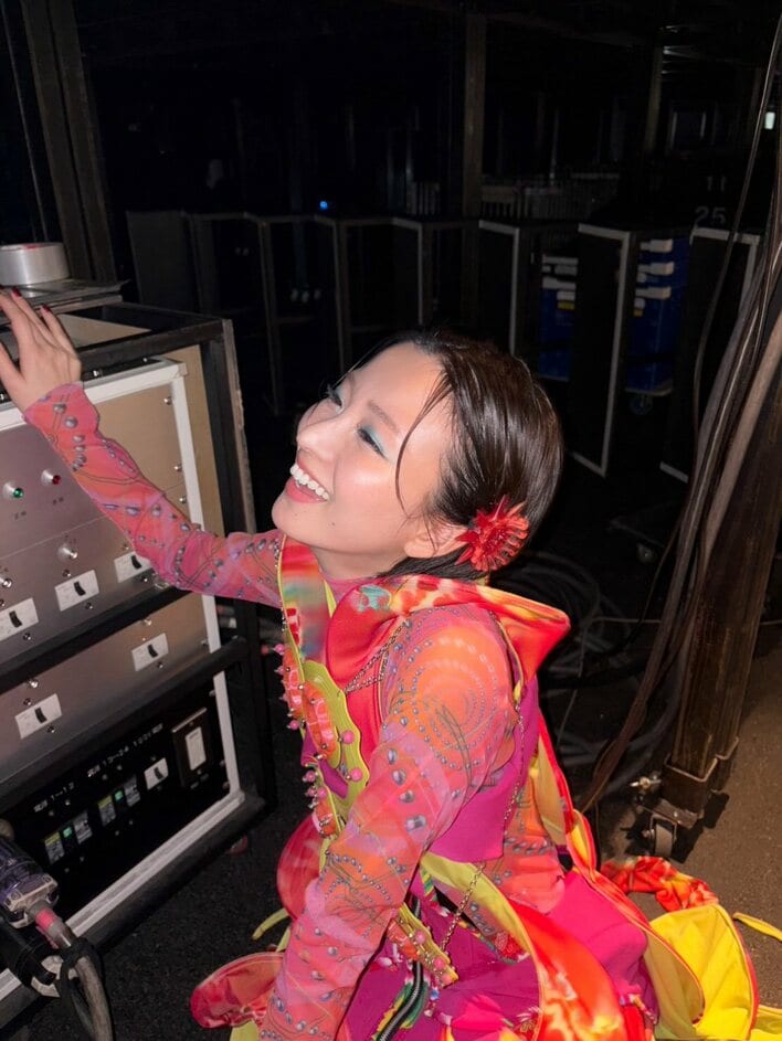 そんな岡崎さんは、ステージ裏でしゃがみ、楽しそうな表情を浮かべたり…。