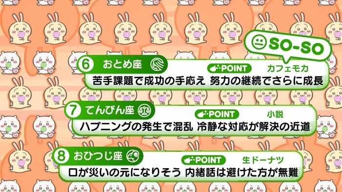 『めざましテレビ』で放送中の「ちいかわ占い」 テレビ放送がない日はお休みで、月~土:朝7時以降に更新予定です。