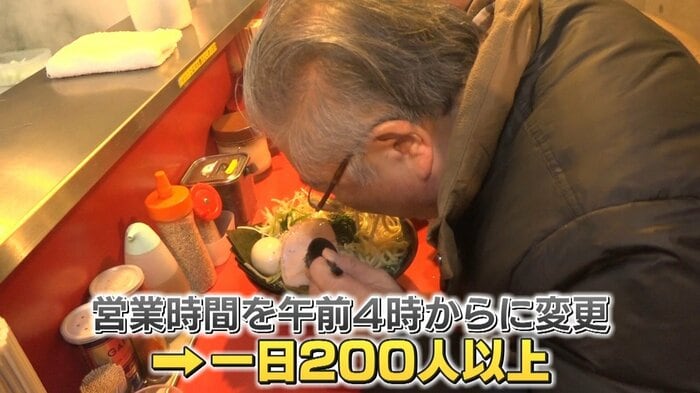 そこで店主は、午前4時からの営業に変更。すると、朝から濃厚な家系ラーメンが食べられると評判になり、1日200人以上が来店する人気店に。