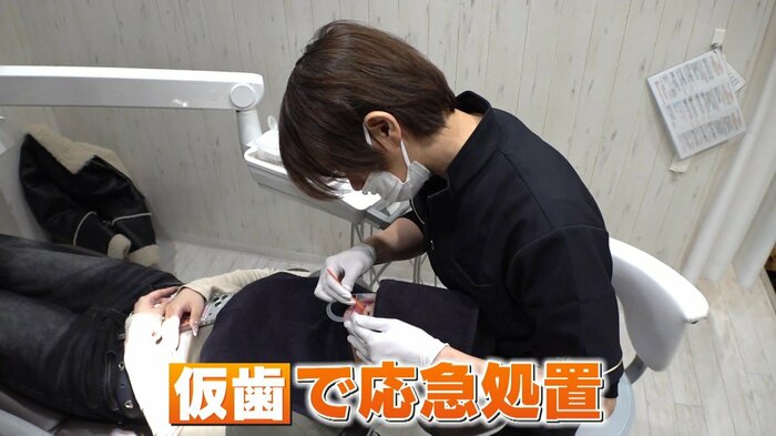なんと、お菓子を食べていたら突然前歯が欠けてしまったといいます。接客業で、翌日も仕事のため、なんとか今日中に直したいと、朝までやっているこちらの歯科にやってきました。