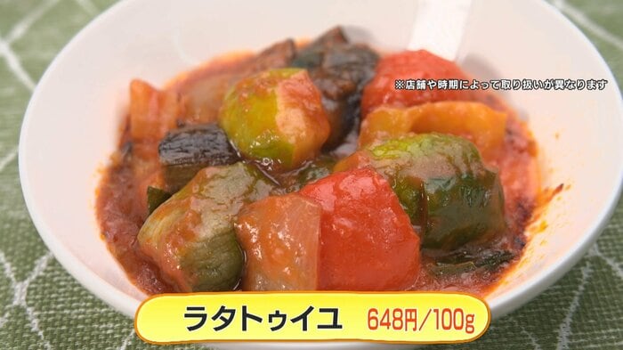 他にも、鶏むね肉に旬の九条ネギなどで仕込んだ味噌ソースを載せた「若鶏と九条葱の味噌グラチネ」(1080円)や、オーブンで香ばしく焼き上げた野菜と、濃厚なトマトソースが絶品のラ「タトゥイユ」(648円/100g)など、シェフこだわりの手作りお総菜が楽しめます。