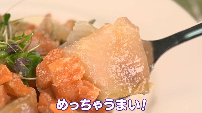 安藤なつ「(静岡県産富士山サーモンのタルタル)めっちゃうまい!サーモンの味がすごく濃い。めちゃくちゃ食べやすい」