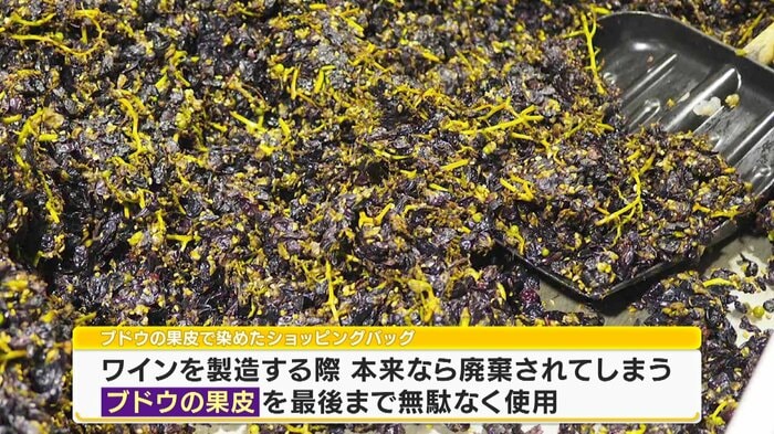 ワインの作る際の、ブドウの絞りかすの果皮で染め上げています。