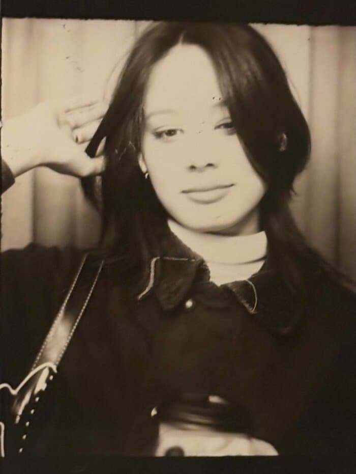 視線を下へ向け、髪に手を添えたモノクロショットも公開しています。