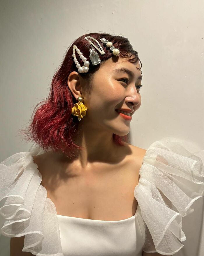 パールやダイヤのような形のヘアピンを髪につけたスタイルも!