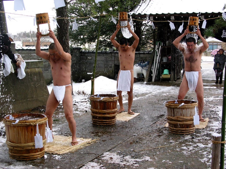 水行の後には、参詣者が樽に残った水を口に含み、家内安全を願うのもこの行事ならではの風習です。